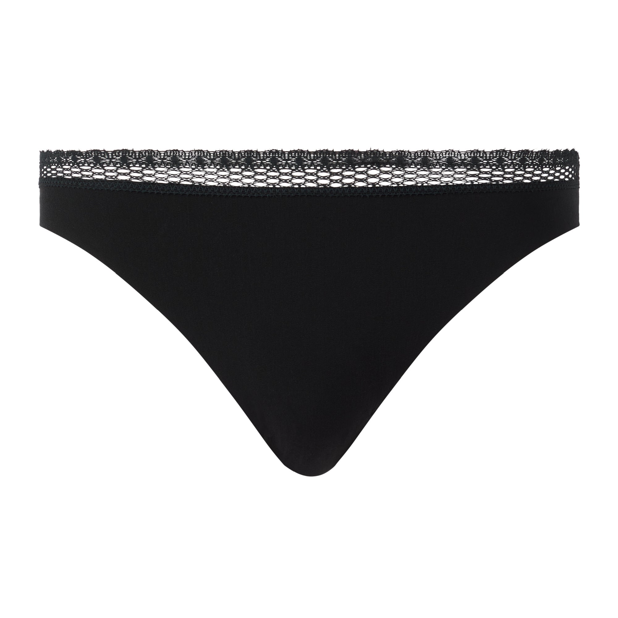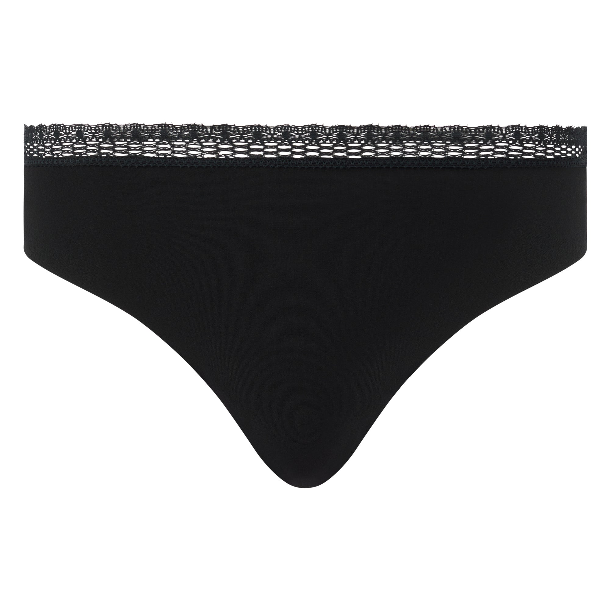 Tangan är tillverkad i lätt modalmaterial och dekorerad med delikata återvunna spetsdetaljer som ger en sofistikerad touch. Finns i storlekar S, M, L och XL, och de rena skären gör tangan helt osynlig under kläder.