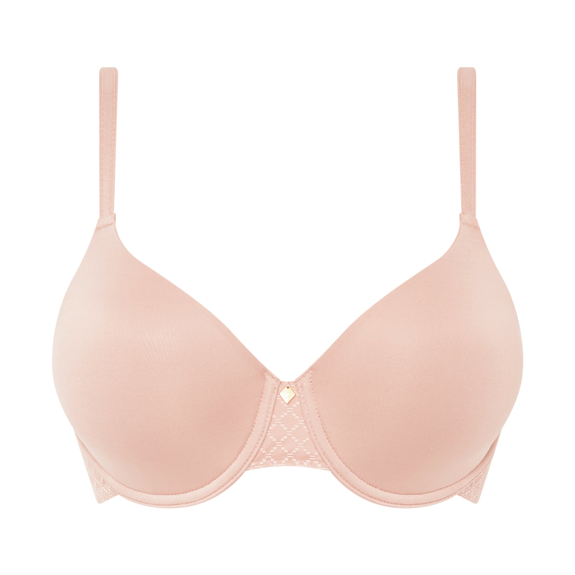 Urringningen och den höga ryggen med osynliga avslut ger komfort och en slät silhuett, och de fullt justerbara axelbanden säkerställer perfekt passform. En diamantformad C-märkt detalj framtill fulländar det feminina uttrycket. BH:n i soft pink finns i storlekarna 65–90 B–H och stängs med två hyskor.