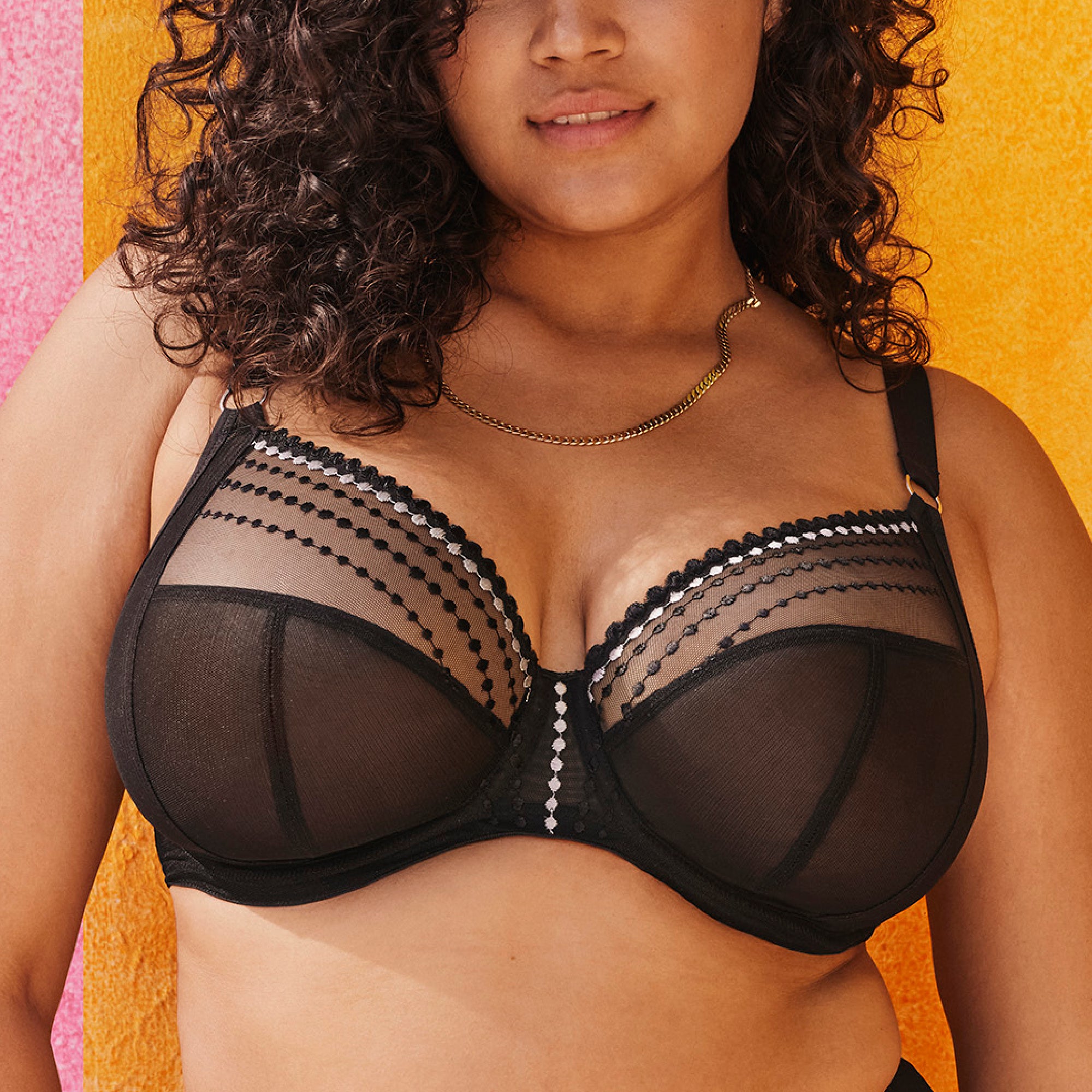Matilda Fullcup BH Svart. Denna Svarta Fullcup BH är från Elomis bas-serie. Svart Fullcup BH har en supersnygg mesh-look på den övre delen av kupan, med fina prickar som Matilda-serien är känd för. Svart Fullcup BH har en tredelad kupa för maximalt stöd och form. Svart Fullcup BH kan knäppas ihop som ett kors på ryggen för optimalt stöd.