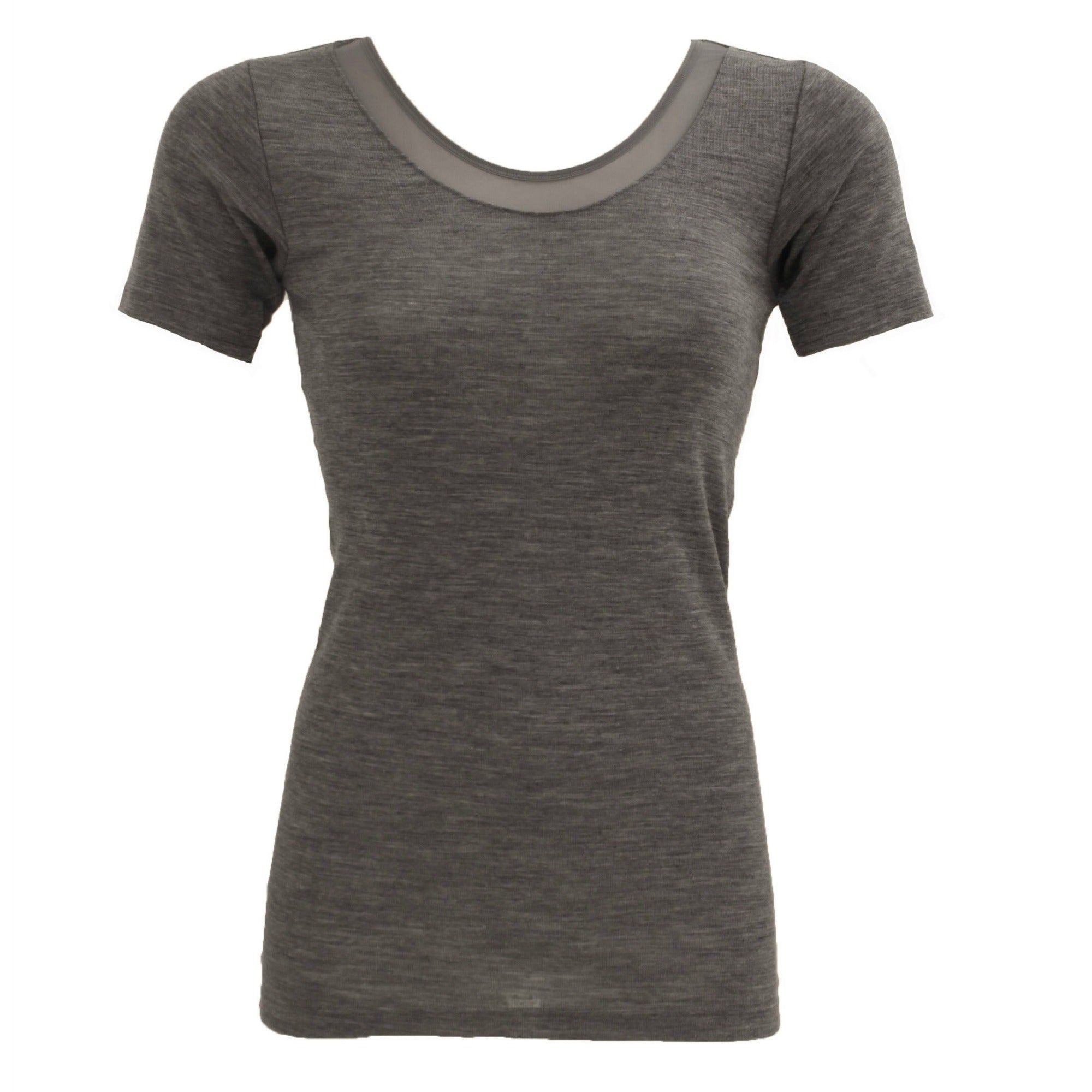Juliana T-shirt i ull. Denna supersnygga t-shirt i 100% ull från Femilet har en superfin padsform med en fin mesh detalj längs halsen. Juliana T-shirt i ull kan köpas i grått och svart, storlek 36-48. Den passar till alla, oavsett ålder och passar till alla årstider, i både kallare och varma säsonger då ull anpassar sig till kroppstemperaturen. Juliana T-shirt i ull kan matchas fint med leggings eller annan nederdel från samma serie.