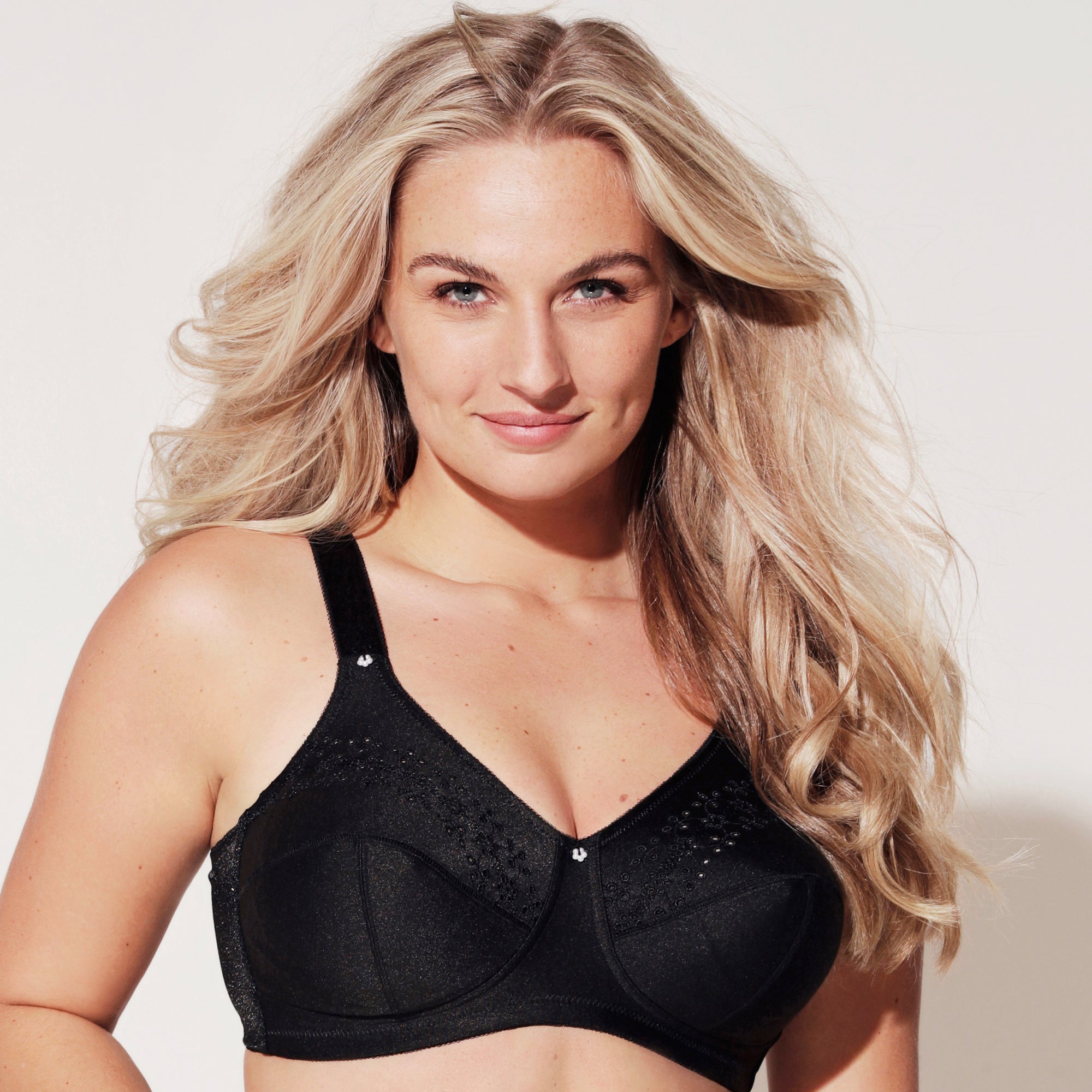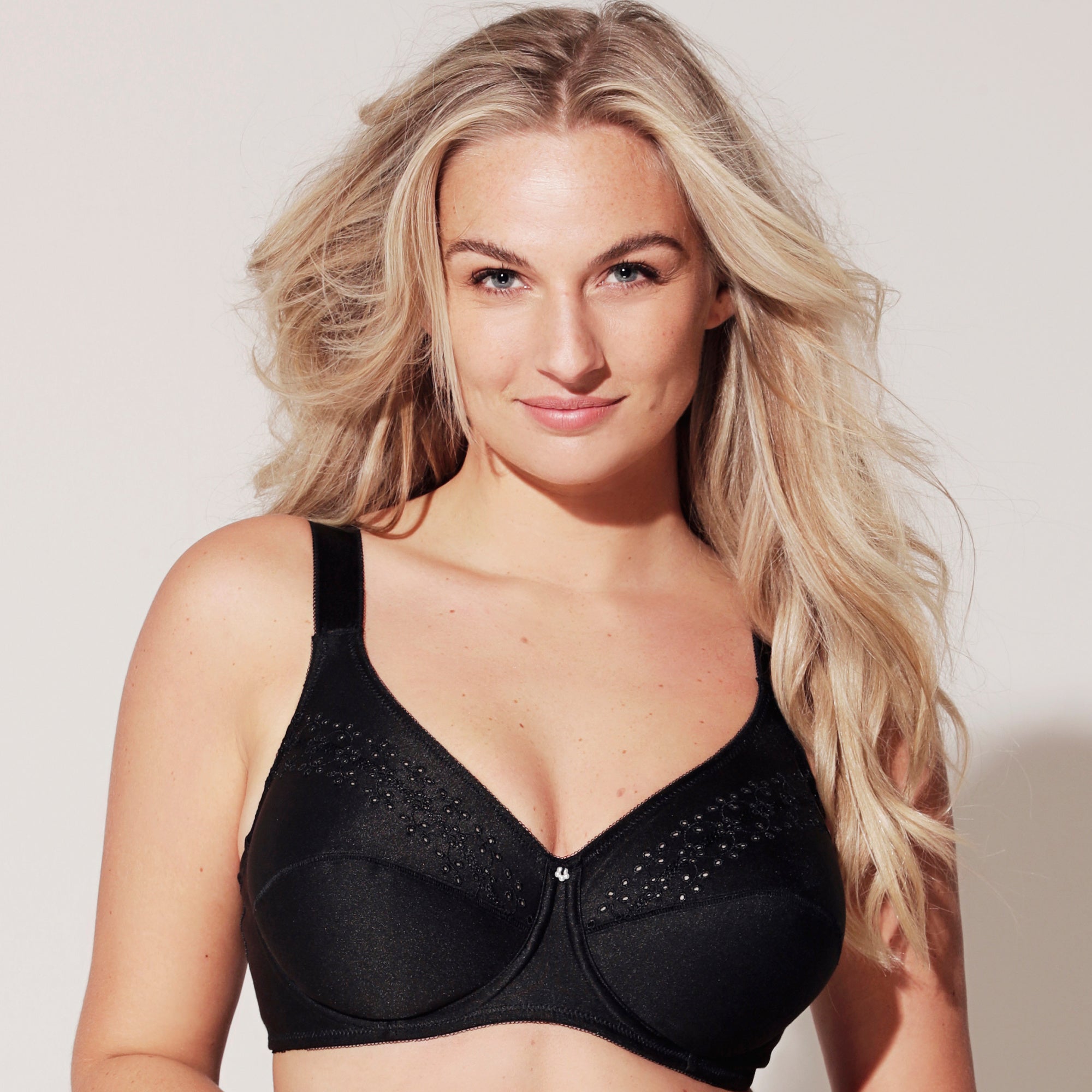 BH’n finns i storlekarna 75-110 B, C, D, E, F och G och har 2 hakar bak för optimal stöd och stabilitet. Den eleganta svarta färgen gör den enkel att styla med resten av din garderob.