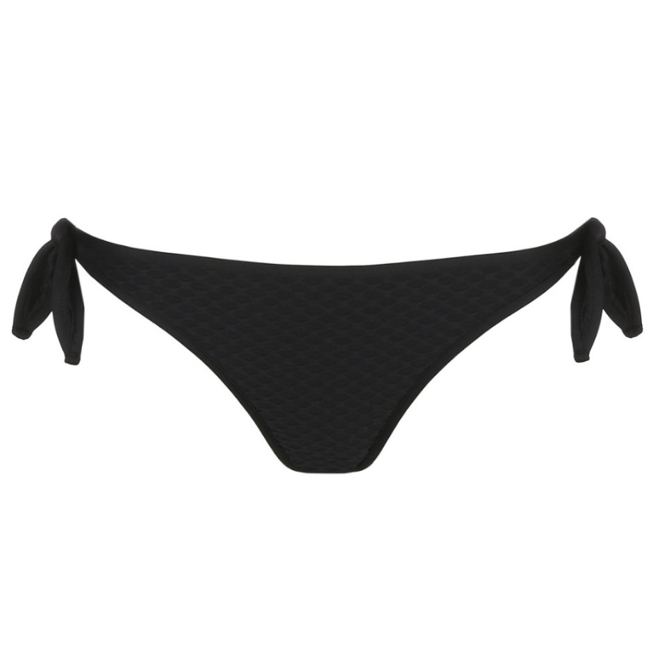 Brigitte Bikini Taitrosa med snöre Svart. Skön och lätt taitrosa från Marie Jo. Denna fina Taitrosa med snöre kan knytas i sidorna efter önskan, och har två jättefina detaljer i mässing sittande framtill på varje sida. Passformen på Taitrosa med snöre är jättebra. Framstycket är lågt och täkcer inte mycket av magen.