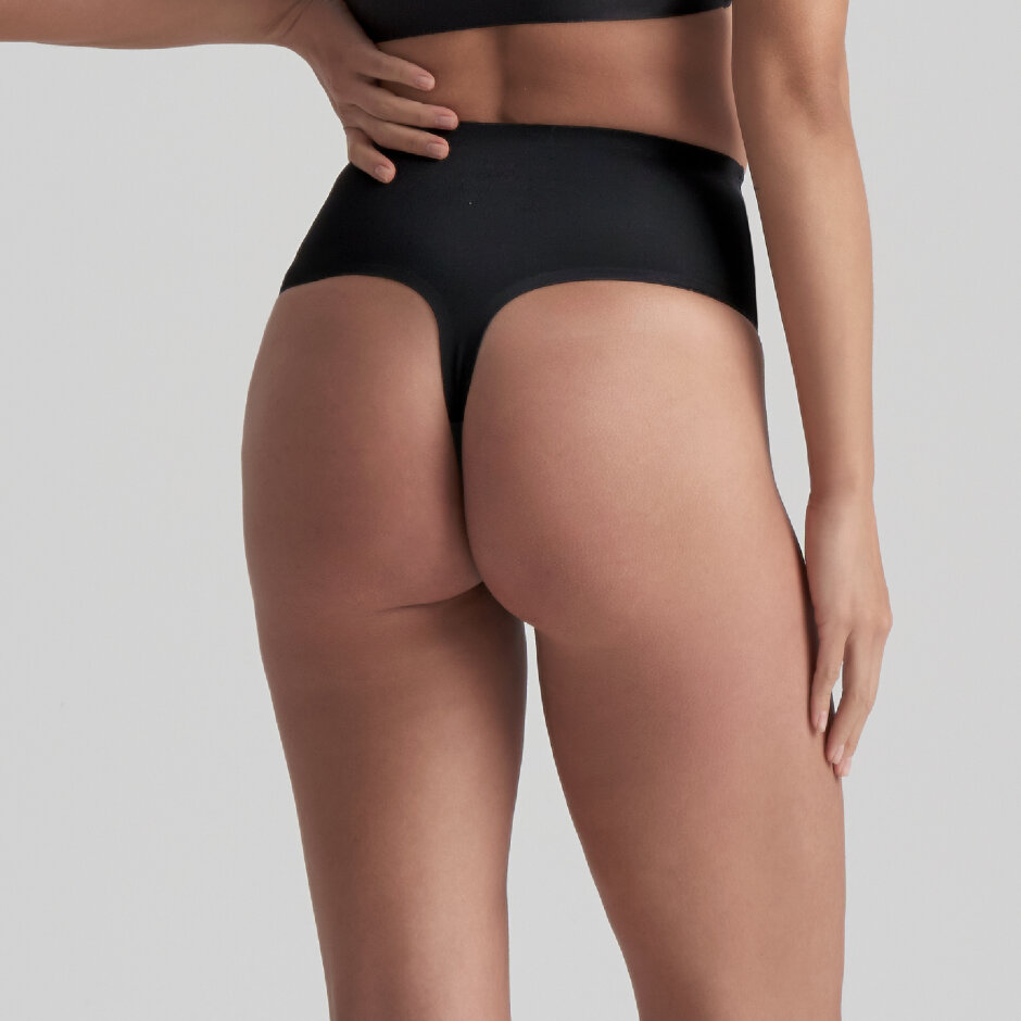 Usynlig Højtaljet String Sort