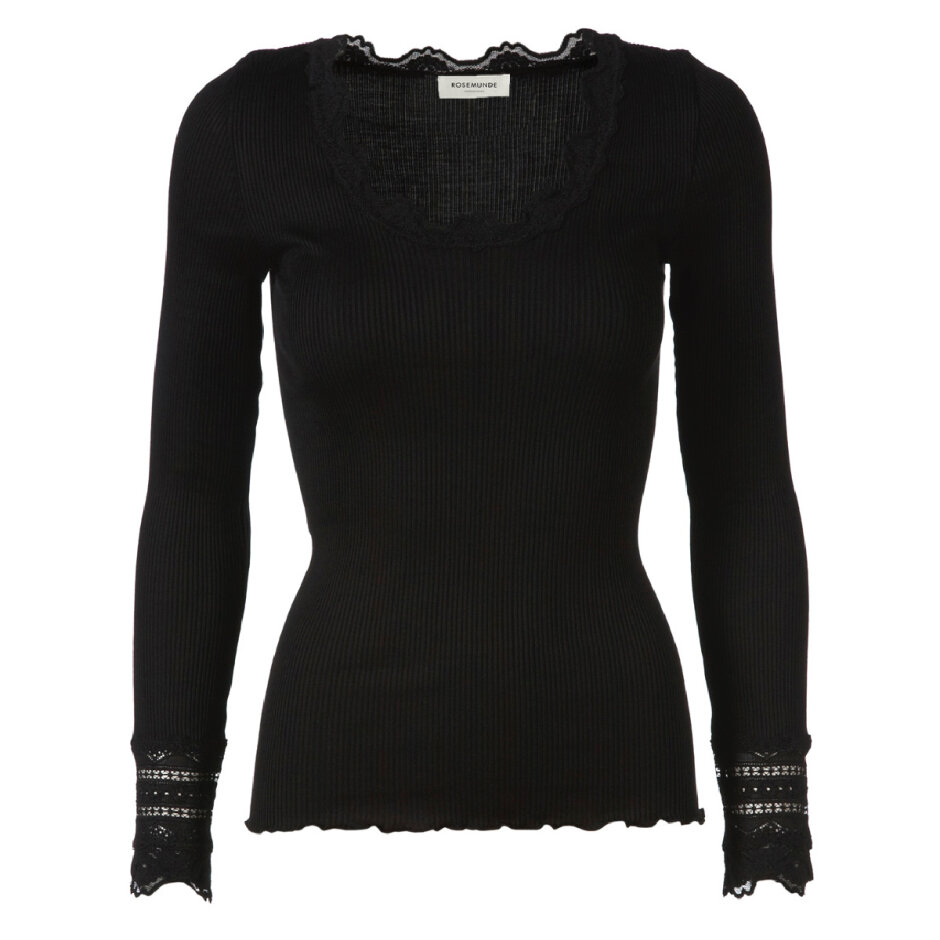 Rosemunde Silke Bluse med Blondekant Sort i artikelnummer 5316-010