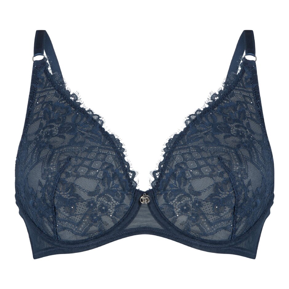 Upptäck LingaDore Plunge BH Midnight i en glittrande blå nyans, designad för dig som vill ha en elegant och sexig look utan vaddering. De mjuka spetskuporna har ett diskret glitter vävt i tyget, vilket ger behån ett sofistikerat uttryck, och den elastiska kanten högst upp på kuporna säkerställer att spetsen ligger perfekt.