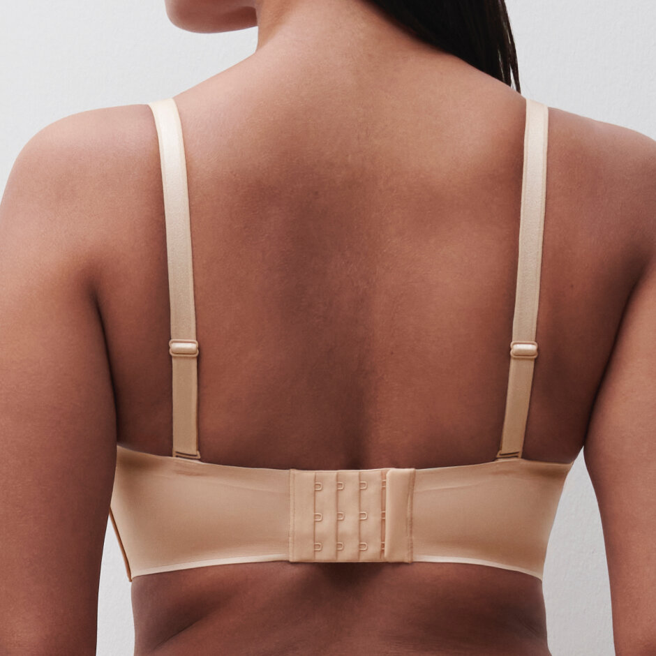 Chantelle Essential axelbandslös BH i Golden Beige ger en naturlig rund form med mjuka, bekväma kupor och avtagbara axelband, vilket gör den perfekt till alla outfits.