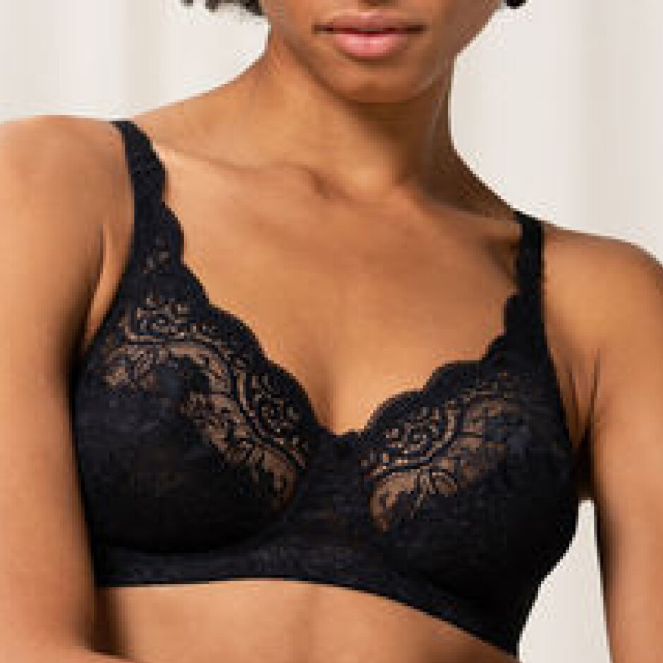 Amourette 300 balconette. Superfin Amourette 300 balconette-BH från Triumph. Denna balconette har vacker spets och är utan bygel. BH:n har heller ingen vaddering i kuporna. Amourette 300 balconette ger en vacker och feminin look med den sneda spetsen på kuporna. BH:n markerar bysten fint och är passar perfekt för vardagsbruk.